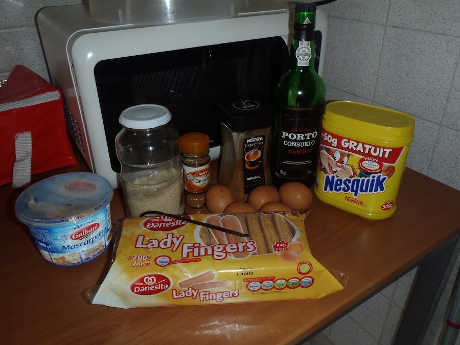 7.- Tras la capa de bizcocho se echa una capa de la mezcla, luego otra de bizcocho mojado en café y así sucesivamente.