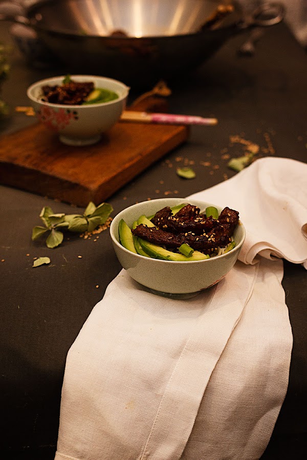 Llevaba mucho tiempo queriendo publicar esta receta de tiras de ternera chinas caramelizadas, con un punto crujiente y picante, pero ha tenido que ser la propuesta de mis amigas blogueras de celebrar la Fiesta de la Octava Luna Llena, también conocida en China como Fiesta del Medio Otoño, la que definitivamente me empujara a buscar por toda la blogosfera cómo prepararla.