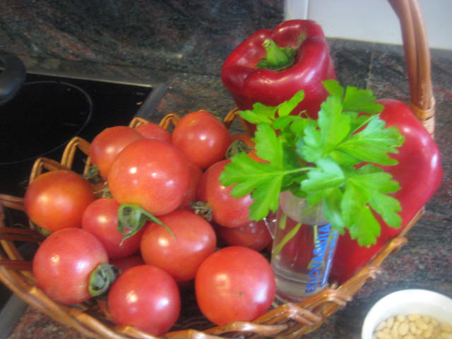 * He puesto un poco de perejil picado de mi terraza porque pimientos verdes no tengo y por dar un toque verde.