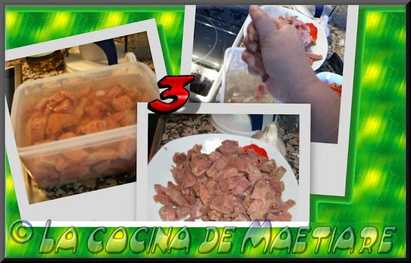 Ponemos a remojo para desalar la tonyina de Sorra durante al menos 10 minutos y seguidamente escurrir bien estrujando para eliminar todo el agua. Realizaremos éste proceso unas 3 veces más