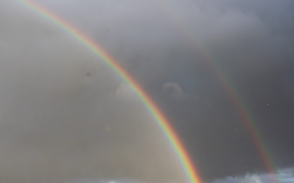 En raras ocasiones, se produce el arco iris doble, como os muestro en una fotografia que hice desde mi ventana hace dos dias. Consiste en un arco mas tenue con los colores invertidos. Algunos conocen al arco iris como la descomposición de la luz blanca. La teoria del arco iris es conocida desde el año 1611. Muchos lo datan en Newton, pero ya fue Descartes y muchos otros los que hablaron sobre este maravilloso fenomeno y acontecimiento. Lo cierto es que es un momento espectacular que no muchas veces te brinda la naturaleza, seguido en la mayoría de las veces de un increíble silencio y paz que rodea el ambiente, e incluso algunas veces cantos de pájaros, suaves brisas o aire resoplando a tu alrededor. Me encanta el arco iris, es como juntar varias tonalidades en una sola y pintarla por el cielo. Es algo fascinante y unico a la vez, ya que a lo largo del año quizas con mucha suerte lo puedas ver en dos o tres ocasiones como mucho.