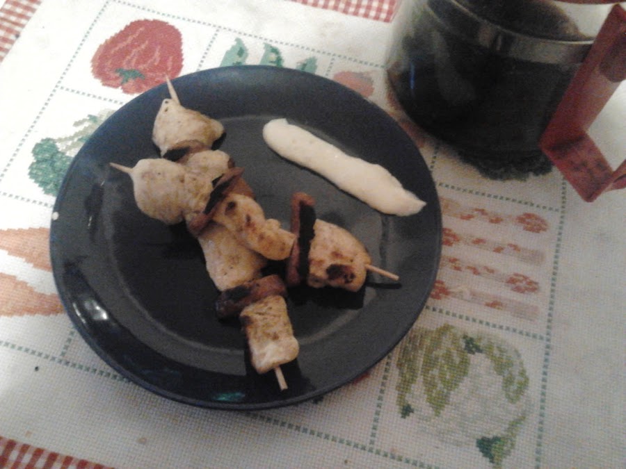 Se pone la plancha de cocina o la sartén bien caliente y se echan las brochetas, no se necesita poner aceite, ya que la tiene incorporada la carne.