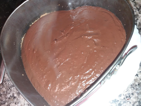 Lo ponemos sobre el molde que teníamos en la nevera, volvemos a poner en la nevera mientras preparamos la siguiente base