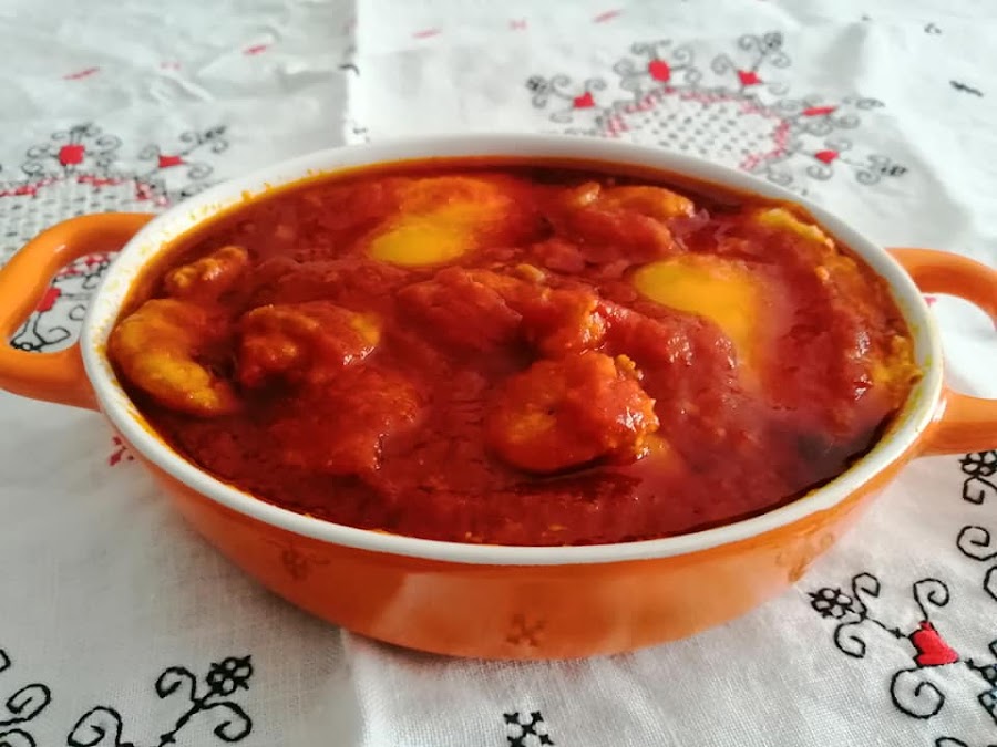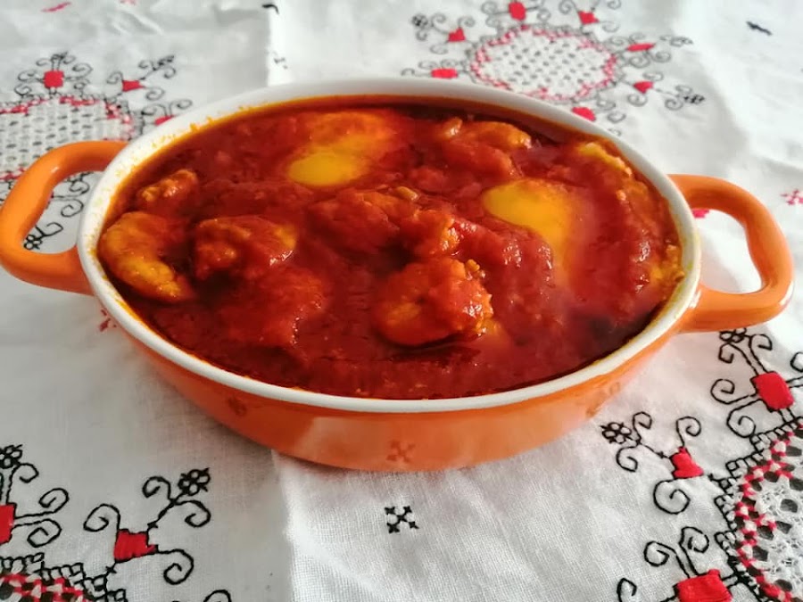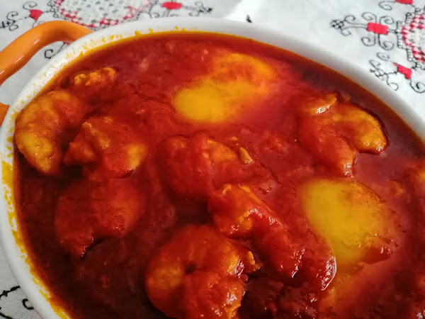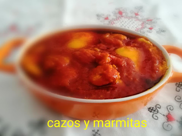 cuado el tomate esté bastante caliente, añadir los huevos, dos por persona, y dejar cuajar. personalmente me gustan más cuajar los huevos en la misma salsa que freir los huevos y luego añadirlos.