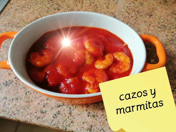 en una sarten con aceite de oliva virgen extra, calentar y añadir los ajos en láminas y la cabezas de los langostinos. Dorar las cabezas y estrujarlas para que salgan las sustancias .