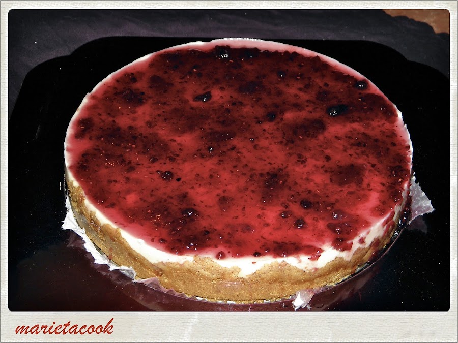 Ingredientes para 8 comensales1/2 litro de leche,1/2 litro de nata,2 sobres de cuajada,1 tarrina de queso tipo crema,1 paquete de galletas tipo digestive,100 gr de azucar,75 gr de mantequilla,confitur ...