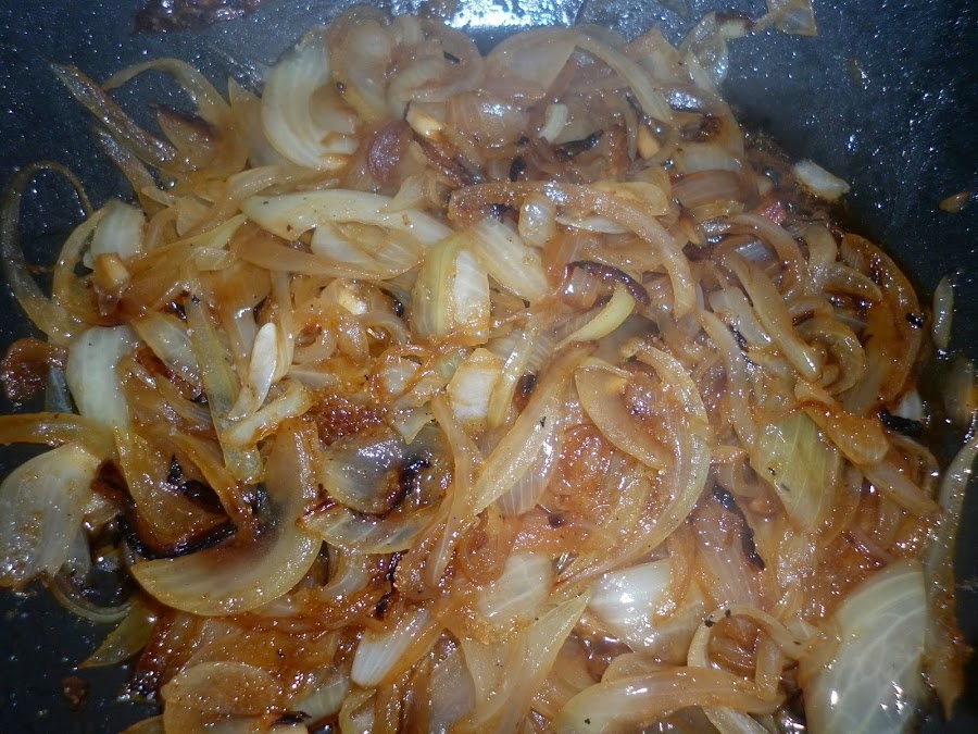 En el segundo recipiente ponemos a caramelizar la cebolla, refreímos hasta dejarla transparente y dorada. Seguimos agregamos el azúcar morena. Refreímos un poco más.
