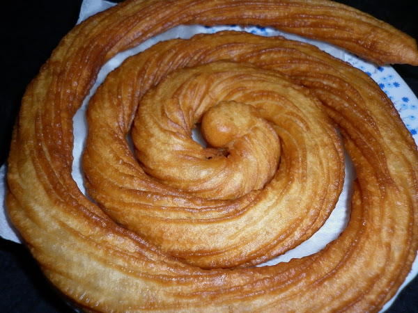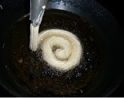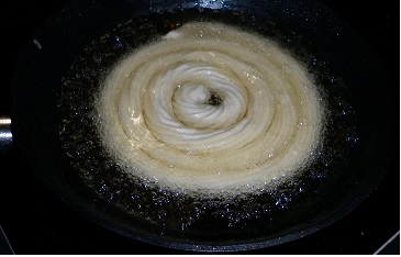 Calentamos el aceite y empezamos a verter el contenido de la manga.