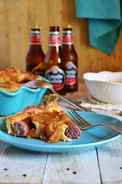 Servir el toad in the hole bien caliente con la salsa aparte y que cada cual se sirva al gusto.
