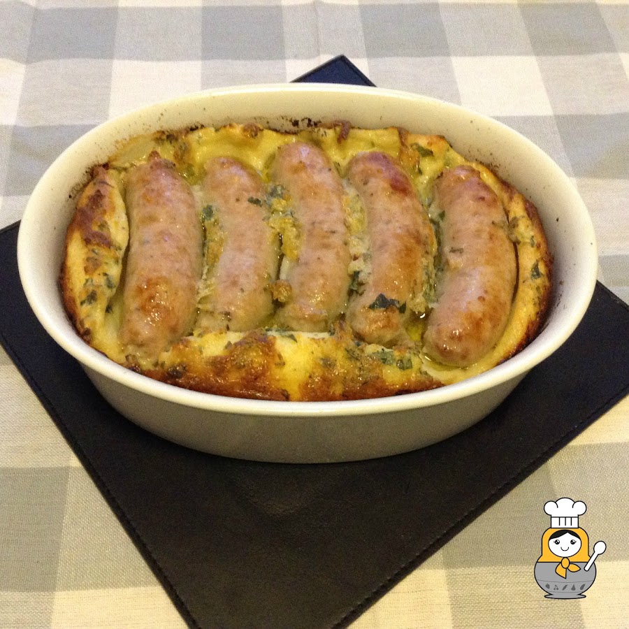 Tengo que decir que la cocina tradicional inglesa sigue siendo un gran misterio para mí. Más allá de las pie y de dos o tres platos más, es un mundo desconocido pero si hay algo que me fascina de su gastronomía, son los nombres que le dan a los platos. Como en este caso. ¿Quién iba a decir que un plato que se llama "sapo en el agujero" en realidad serían salchichas al horno con pudding de Yorkshire.