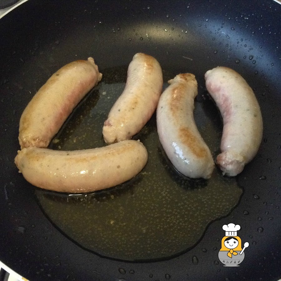 Por otro lado, en una sartén, freímos las salchichas en un fondo de aceite y hasta que estén ligeramente doradas.