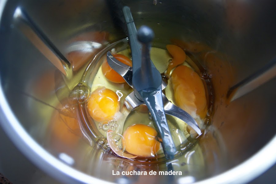 Batimos los huevos, puedes hacerlo en la thermomix o con una batidora.