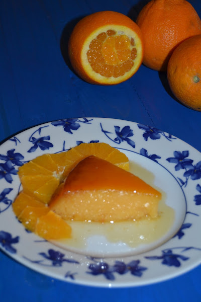 Estamos en época de naranjas, están a buen precio y es otra forma de comer esta fruta que tantas vitaminas nos aporta. Yo lo prepare aprovechando que tenia yemas sobrantes de otro postre, y así salí de ellas triunfante. Queda buenísimo, como no podía ser de otra manera con esos ingredientes.