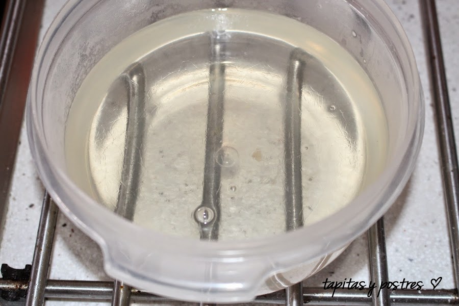 Ponemos el agua y el azúcar en el vaso y preparamos el almíbar.