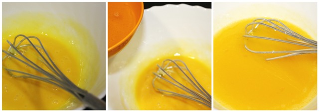 Ponemos las yemas y el huevo en un bol y batimos ligeramente (no nos interesa que se formen muchas burbujas de aire), iremos incorporando el almíbar que habíamos hecho anteriormente muy poco a poco, en forma de hilo, y seguiremos batiendo (recordad que poco). Reservamos.