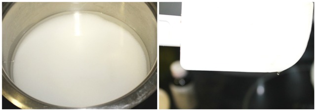 Pondremos el agua con el azúcar (de los ingredientes para el tocino de cielo) a fuego muy lento, hasta que veamos que se forma un almíbar ligero (para comprobarlo con una cuchara cogemos un poquito y lo dejamos resbalar, cuando veáis que se queda la última gotita enganchada a la cuchara y le cuesta caer ya estará listo), sacamos del fuego y dejamos templar (es importante que esté templado si no cuando lo incorporemos al huevo podría cuajarlo y no es lo que queremos).