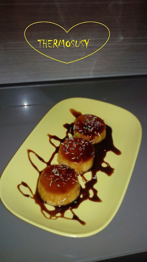 Echamos el caramelo liquido en los moldes y vamos echando la mezcla (pasándola por un colador antes de echarla a los vasitos), tapar con papel de cocina y encima papel albal. Metemos los moldes en el varoma, tanto arriba como abajo. Echamos 1 litro de agua, colocar el varoma en su posición, 45 min. /Varoma/vel.2. Terminado el tiempo le quitamos el papel de cocina y el papel albal y llevamos unas horas al frigo antes de desmoldar. Y decorar como queramos.