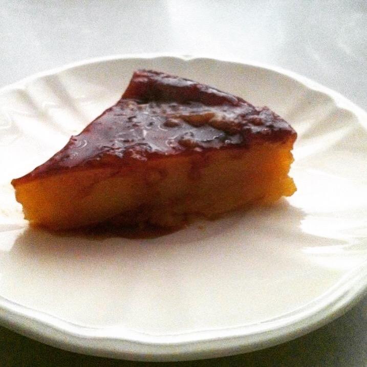 Poner caramelo líquido en una flanera (yo utilizo la lata de galletas con mantequilla) y verter la mezcla en ella.