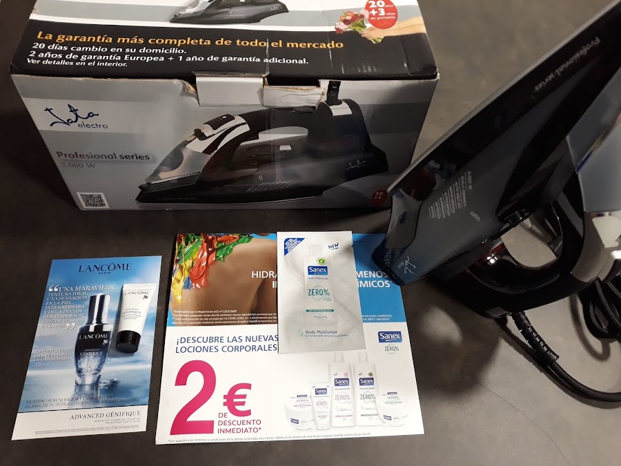 En esta foto podéis ver dos muestras: una de loción corparal de Sanex y la otra de serum de Lancôme y una estupenda plancha que conseguí con las caracolas de Nicesquet.