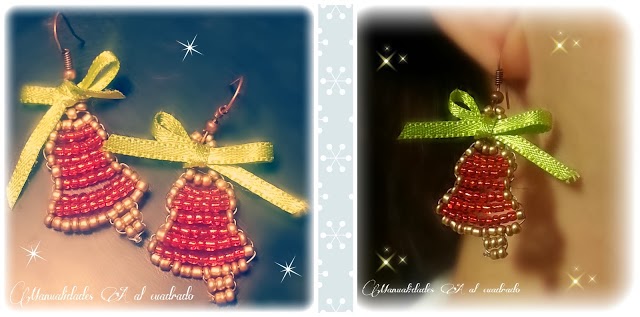 Y un blog que me tiene súper enganchada, Manualidades al cuadrado, donde Desiré siempre presenta cosas con un gusto estupendo, aquí unos pendientes de campanas con abalorios, qué os parecen?