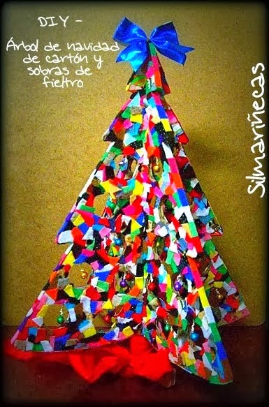 Desde Silmariñecas, nos propone un árbol diferente, hecho con trozos de fieltro y cartón, imaginación al poder y especial para hacer con los peques de la casa.