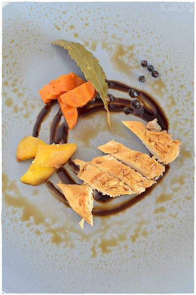 Este pollo en escabeche también puede completar junto con unas legumbres por ejemplo, cualquier guiso. Yo lo he añadido multitud de veces con unos garbanzos y...¡no veas como triunfan!