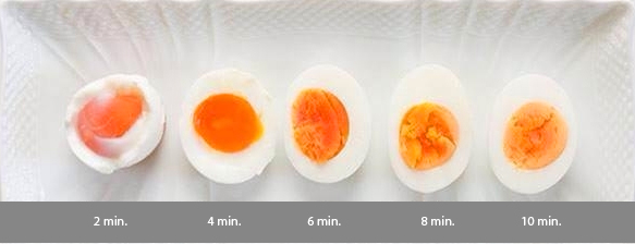 Como vemos, para obtener un huevo duro, tenemos que cocinarlo durante 10 min.
