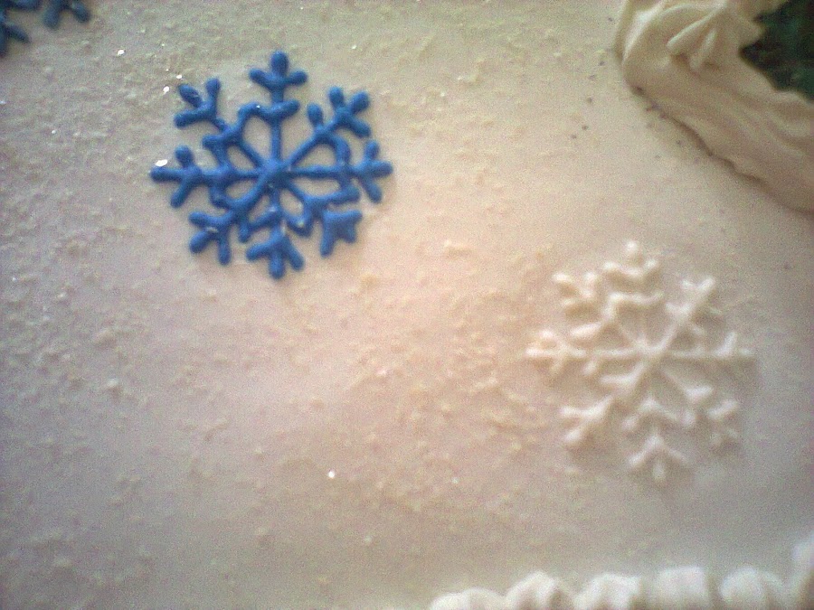 Los copos estan dibujados sobre el fondant con glasé....