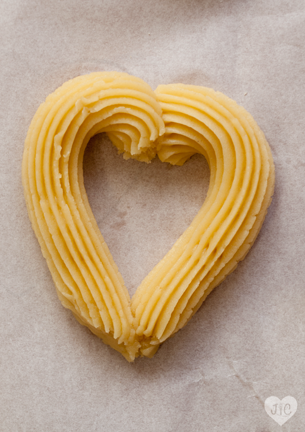 Hay que dejar huecos entre los corazones, la mantequilla, al derretirse, hace que aumente el tamaño.