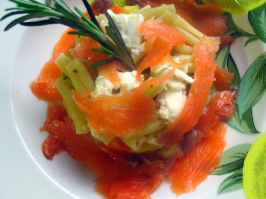 VER RECETA: http://www.comerespecial.com/2013/03/timbal-de-pasta-con-salmon-verduras-y.html