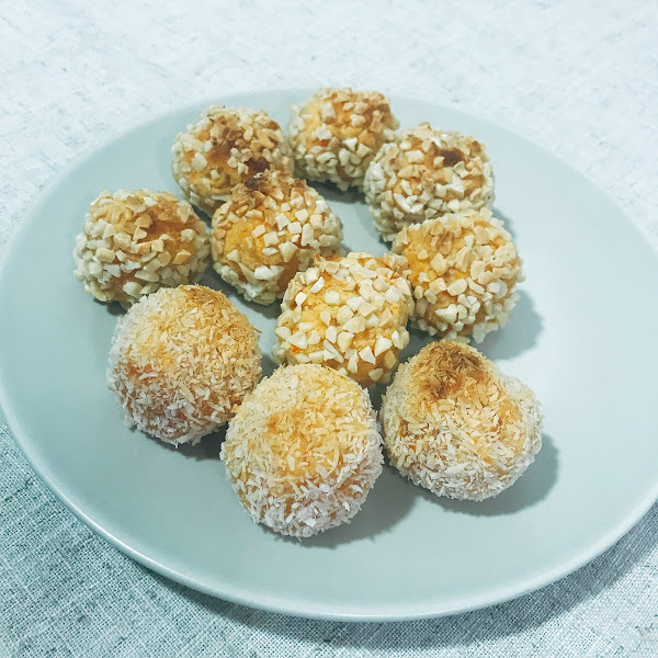 9. Haremos bolitas pequeñas con la masa y las cubriremos con la almendra en cuadraditos o el coco rallado.