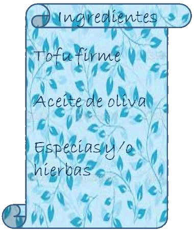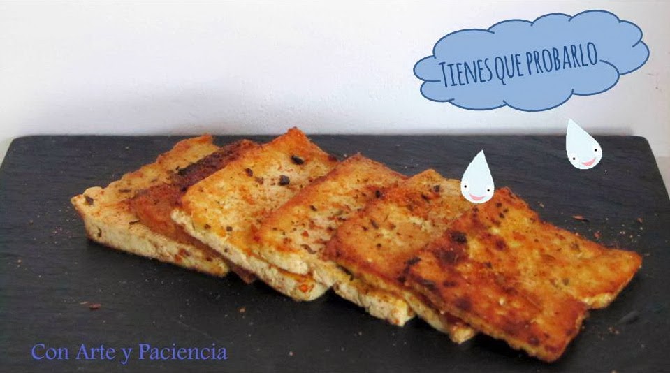 Laminamos el tofu firme, no más de 1 cm. En una plancha o sartén con un poco de aceite de oliva a fuego medio.