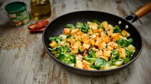 Con ayuda de unas pinzas de cocina, dar la vuelta a cada pieza a medida que se vayan cocinando. Deben quedar muy doradas, con los bordes ligeramente crujientes. Si se han cortado en cubos, habrá que cocinar cada una de las seis caras. Retirar de la sartén conforme estén al punto deseado. Emplear según la receta que se vaya a preparar a continuación.