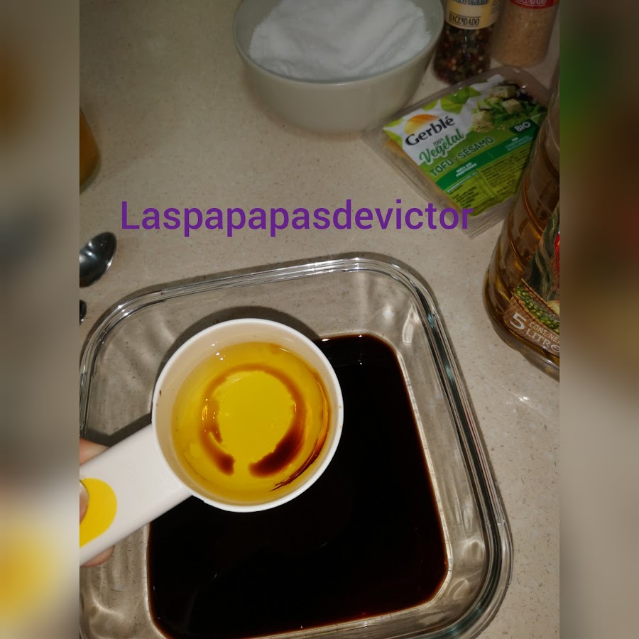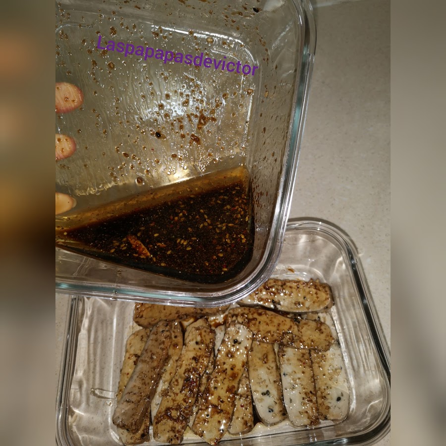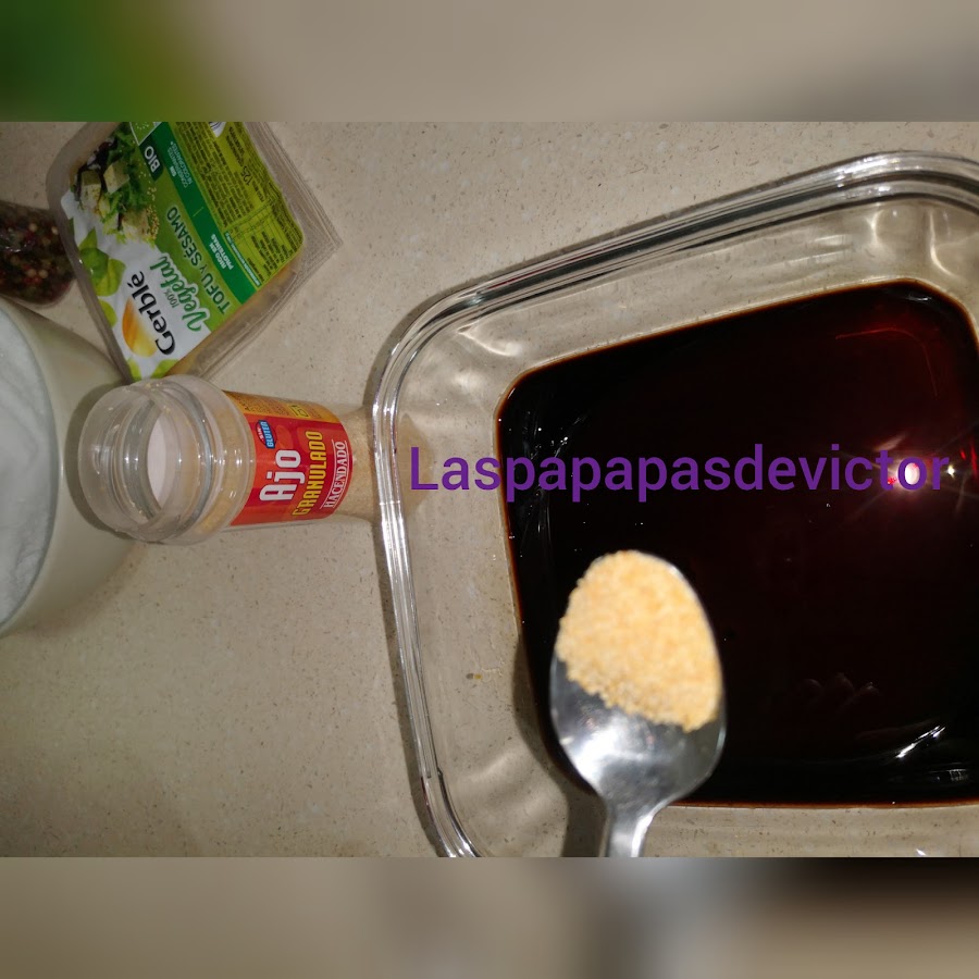 En un bol para macerar, puse salsa de soja con vinagre de manzana (no tenia y Le puse balsámico)