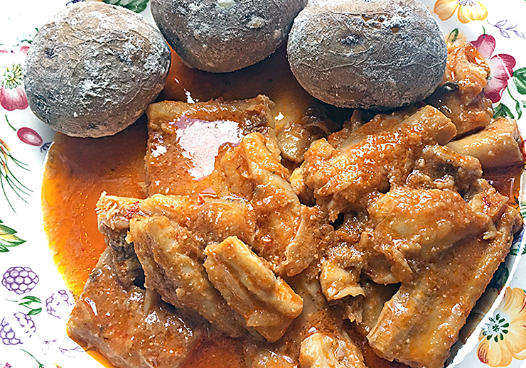Se deja hervir el conjunto unos 10 minutos a fuego lento para que integren bien los sabores. Se acompañan con unas papas arrugadas o una batata guisada.