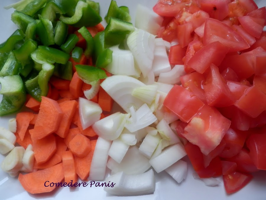 Estoy empezando a desvariar, todos sabemos que el tomate no es ningún animal, pero lo que quería al nombrar esta receta es diferenciarla de otras salsas de tomate que preparo. Esta receta es del libro de Cocina Vegetariana y de ahí su nombre.