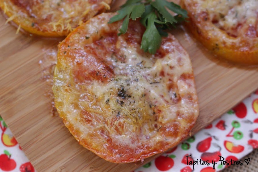 Hoy he preparado una guarnición distinta a las que suelo preparar, sencilla, económica y muy sabrosa. Unos tomates horneados con queso que están para chuparse los dedos.