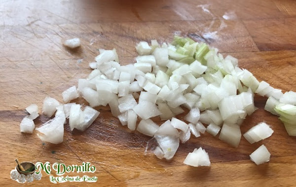 Picamos la cebolla fresca y la añadimos al cuenco.