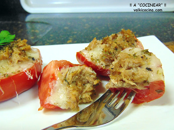 TOMATES AL HORNO CON ATÚN Y QUESO
