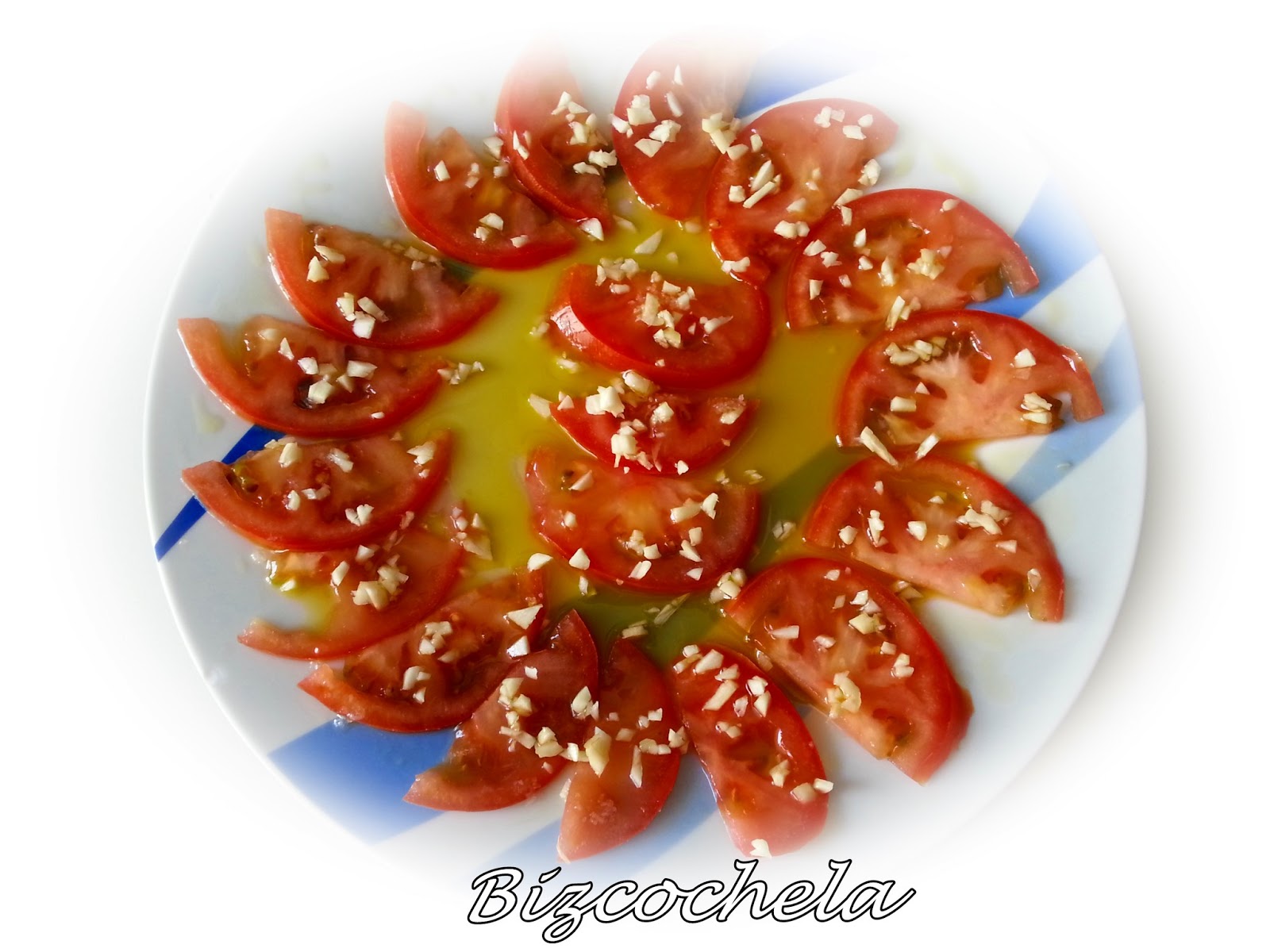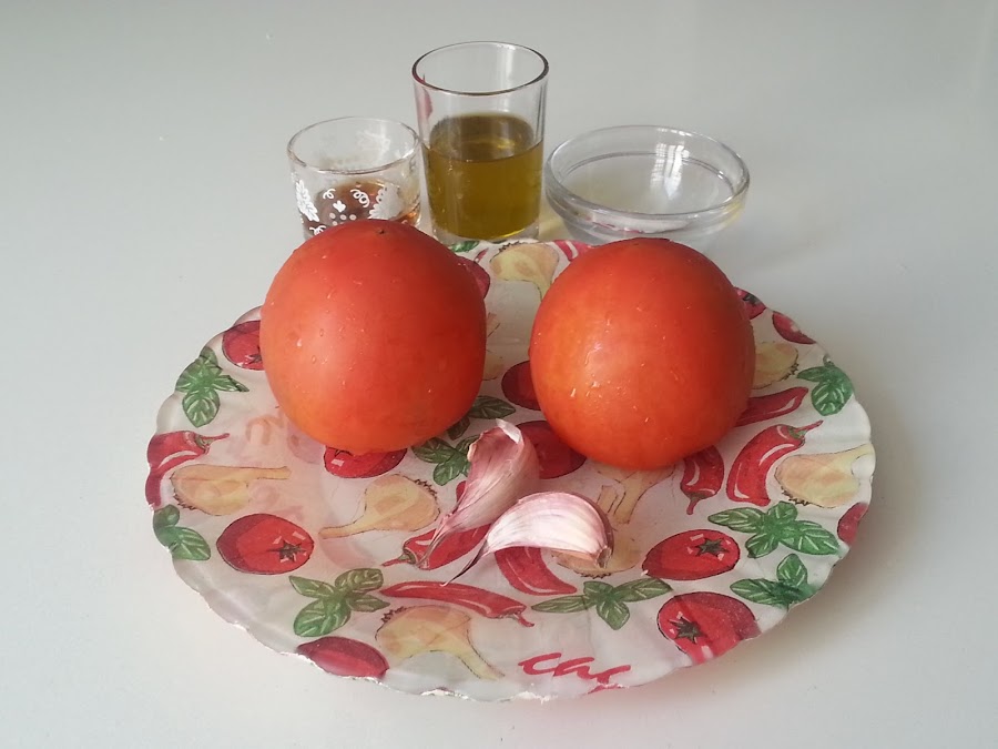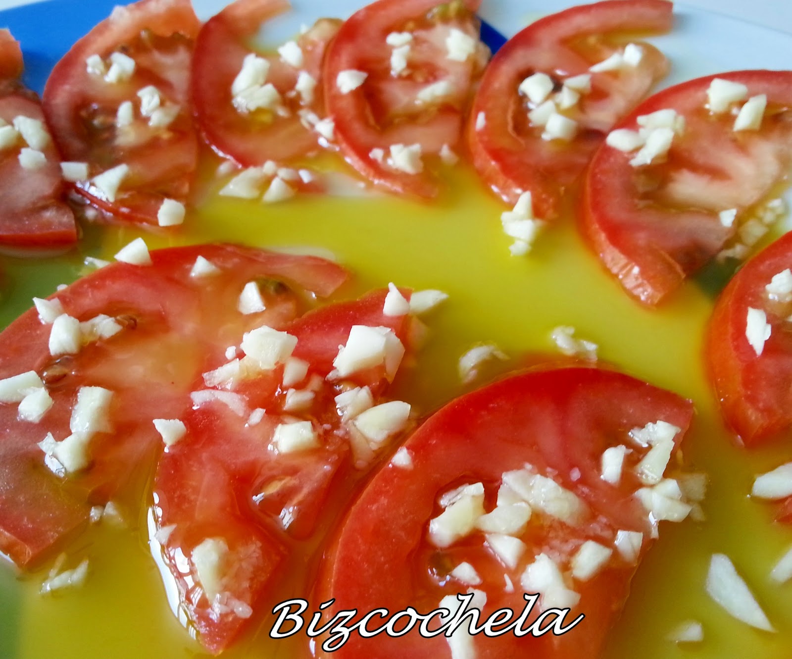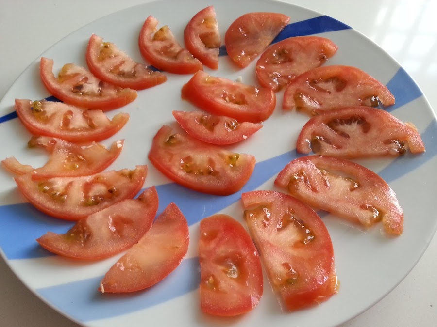 Y en esta ocasión propongo unos buenos tomates aliñados con ajo, son una delicia.