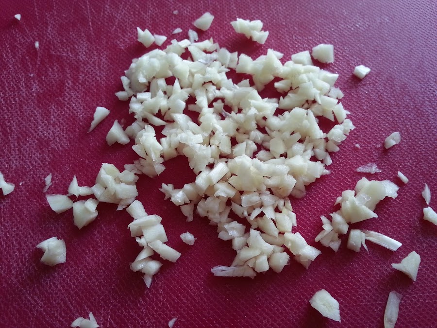 2. - El ajo lo picamos muy finito.