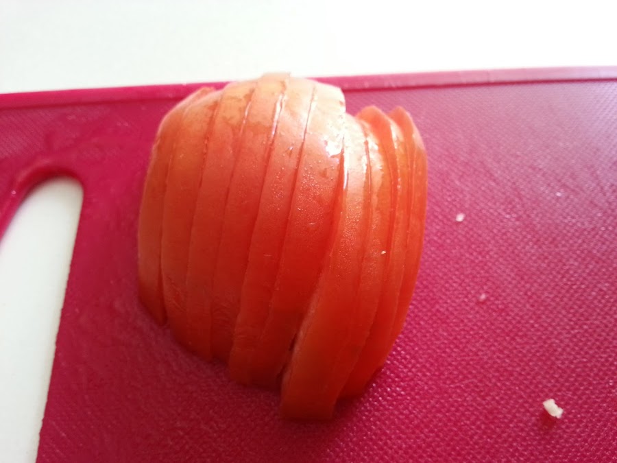 1. - Lavamos muy bien los tomates y los cortamos en rodajas.