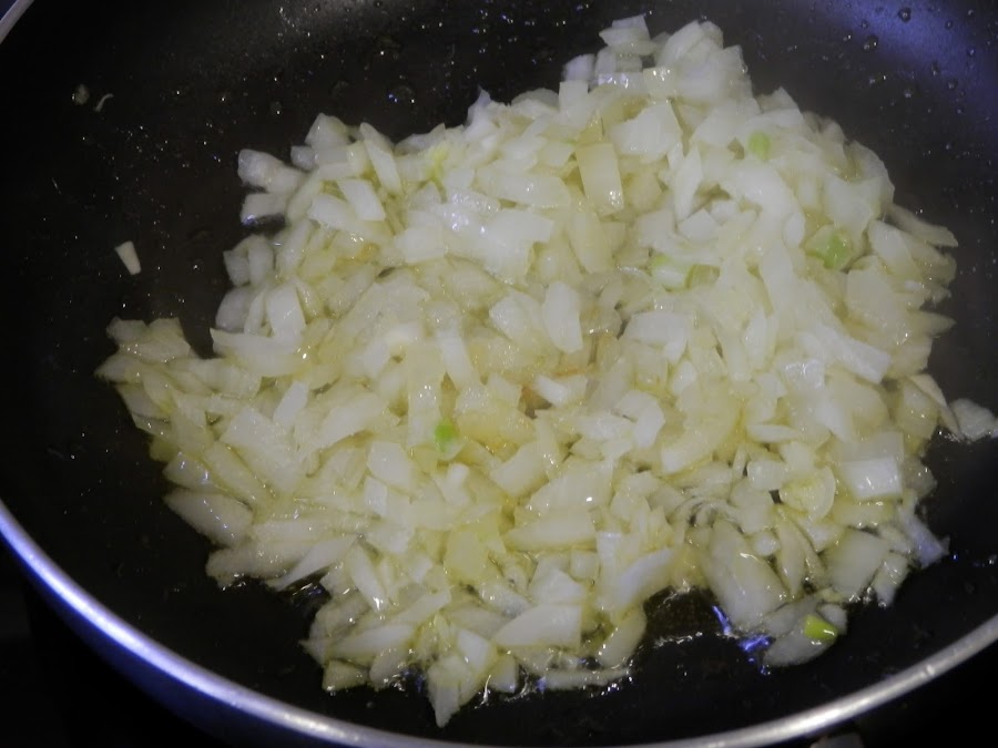 En una sartén añade un par de cucharadas de aceite y añade la cebolla.
