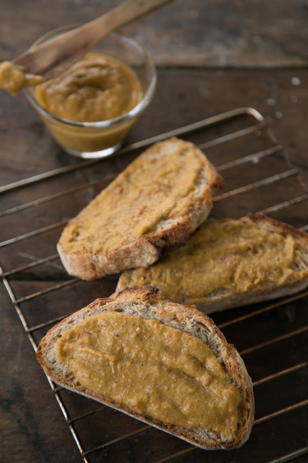 Cuando sirvo no mezclo mucho las salsa para que los comensales puedan untar su pan como quieran, con sólo tomate, con sólo espárragos o mezclado. Al final es una mezcla torpe que hace felices a todos y yo soy feliz porque todos somos felices. :)