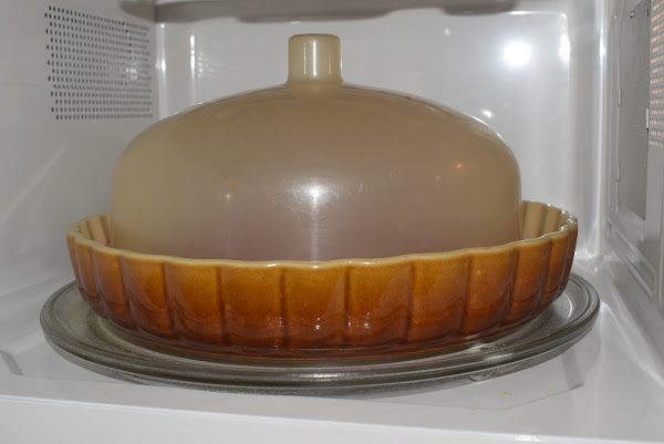 Pon encima una tapadera apta para microondas y programa función microondas, 750W , 40 minutos.