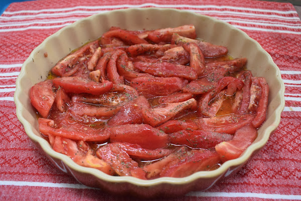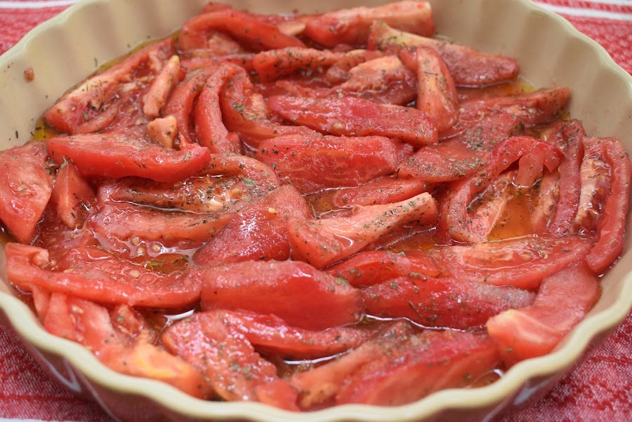 Lava y pela los tomates. Trocea en cuartos y colócalos en un recipiente apto para el microondas.