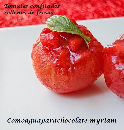 Rellenar los tomates que habremos sacado del almíbar y escurridos de exceso de almíbar. Y a comeeeeè!!!