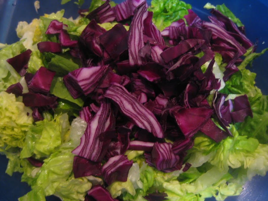 Para darle un toque más crujiente, haremos lo mismo con la col lombarda...a los que no la hayáis probado cruda, en ensalada, os la recomiendo...