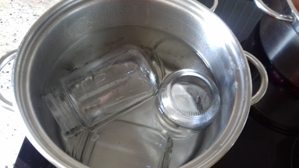 Esterilizamos los tarros hirviendolos en agua unos minutos. Los dejamos secar.