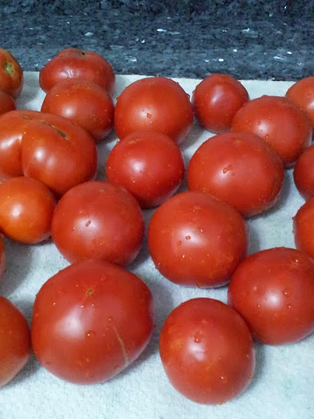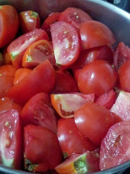 Mi huerto no es muy grande, ocupa un lugar pequeño en mi jardín, pero cada año que pasa le sacamos más partido, con nuestros tomates, pimientos, berenjenas, calabacin, incluso plantamos cebollas, y lo mejor de todo el olor que tienen, ese olor tan característico de lo sano y natural de un producto que no madura en cámaras que cuando lo llevas a la mesa su sabor es inconfundible y al cortarlo de la mata sigue oliendo. Pues bien el año pasado me dio por hacer mermelada de tomates, que termine regalando a la familia y amigos y este año he aprovechado para hacer conservas.